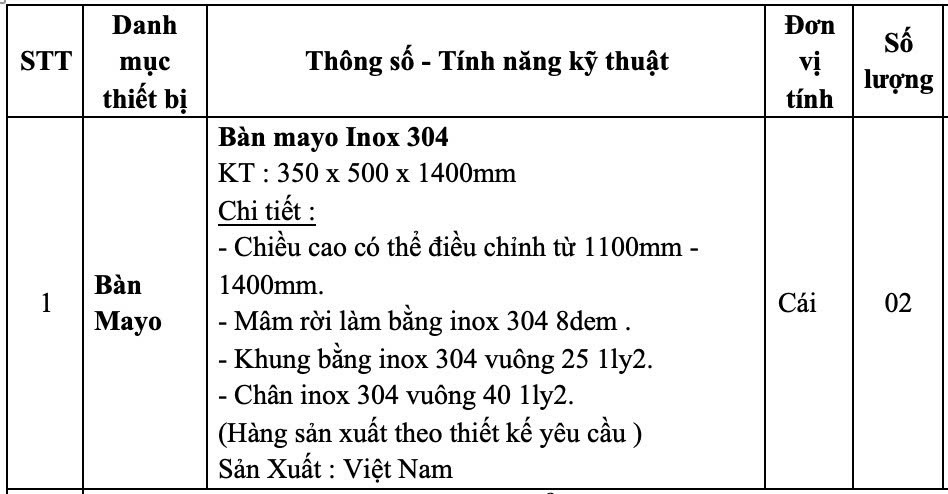 Phòng Vật tư – thiết bị y tế mời báo giá Mua sắm Bàn Mayo