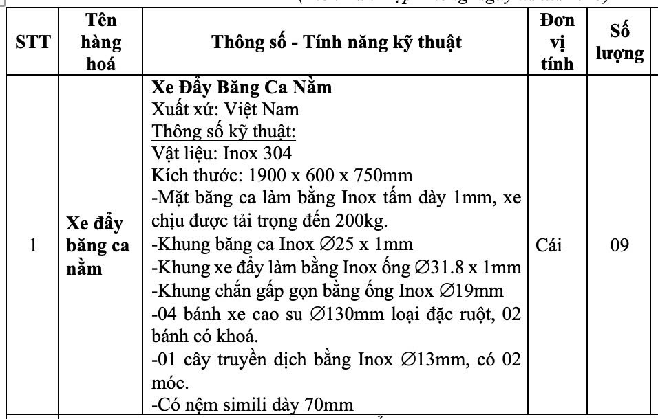 Phòng Vật tư – thiết bị y tế mời báo giá Xe đẩy băng ca nằm