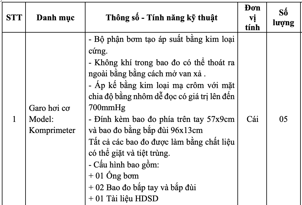 Phòng Vật tư – thiết bị y tế mời chào giá Bộ garo hơi cơ Model: Komprimeter