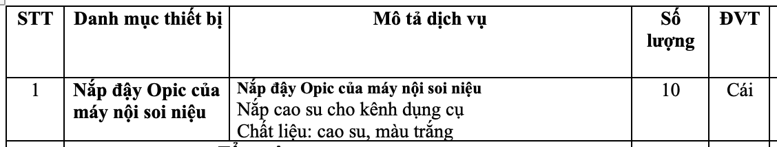 Phòng Vật tư – thiết bị y tế mời chào giá mua sắm Nắp đậy Opic của máy nội soi niệu