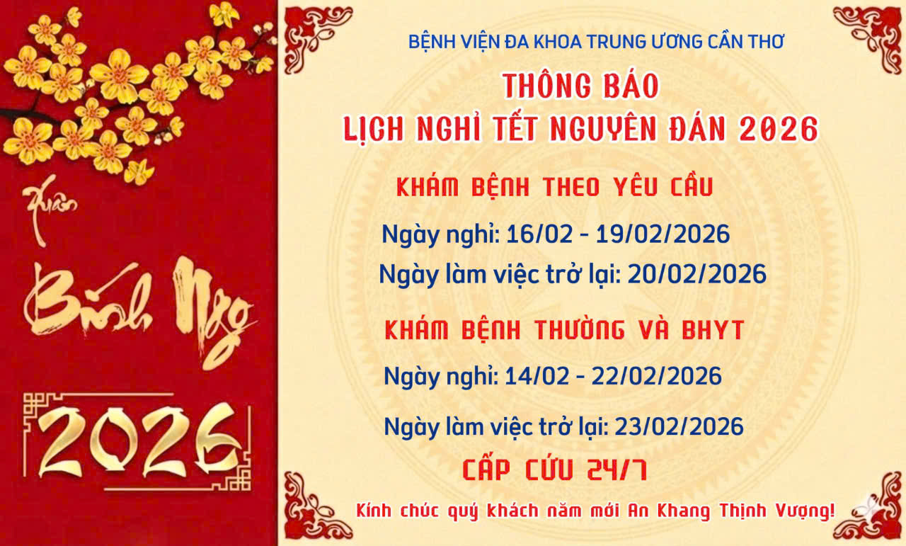 ☘️Nhằm mục tiêu phục vụ khám, chữa bệnh cho quý bà con trong dịp Tết Nguyên Đán Bính Ngọ, Bệnh viện Đa khoa Trung ương Cần Thơ thông báo lịch nghỉ Tết năm 2026 như sau: